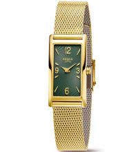 Einen weitgehenden Schutz vor unbeabsichtigten Kratzern und Blessuren bietet das Uhrenglas vom Typ "Mineralglas, gehärtet". Darunter zeigt sich das Zifferblatt Ihrer neuen Traumuhr in der Farbe Grün.