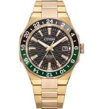 Automatik Uhrwerk, das, wie für Citizen Uhren üblich, eine präzise Zeitmessung garantiert und folgende Funktionen bereitstellt: Stunde, Minute, Sekunde, Datum, 24-Stunden, GMT.