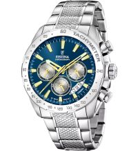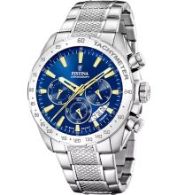 Das Herzstück dieses Zeitmessers ist ein Quarz Uhrwerk (mit Batterie), das, wie für Festina Uhren üblich, eine präzise Zeitmessung garantiert und folgende Funktionen bereitstellt: Stunde, Minute, Sekunde, Datum, Chronograph, 24-Stunden, Wochentag, Tachymeter.