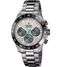 Quarz Uhrwerk (mit Batterie), das, wie für Festina Uhren üblich, eine präzise Zeitmessung garantiert und folgende Funktionen bereitstellt: Stunde, Minute, Sekunde, Chronograph, 24-Stunden.