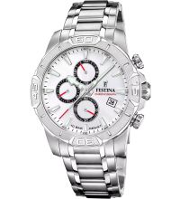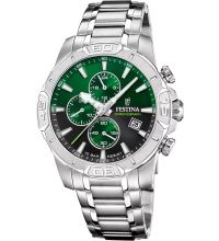 Quarz Uhrwerk (mit Batterie), das, wie für Festina Uhren üblich, eine präzise Zeitmessung garantiert und folgende Funktionen bereitstellt: Stunde, Minute, Sekunde, Datum, Chronograph, 24-Stunden, Tachymeter.