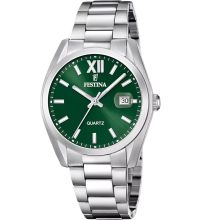 Einen weitgehenden Schutz vor unbeabsichtigten Kratzern und Blessuren bietet das Uhrenglas vom Typ "Mineralglas, gehärtet". Darunter zeigt sich das Zifferblatt Ihrer neuen Traumuhr in der Farbe Grün. Zur Beleuchtung der Festina F20707/8 tragen Leuchtzeiger, Leuchtindexe bei und ermöglichen eine gute Ablesbarkeit auch bei ungünstigen Lichtverhältnissen.
