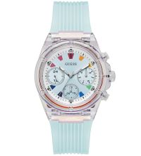 Einen weitgehenden Schutz vor unbeabsichtigten Kratzern und Blessuren bietet das Uhrenglas vom Typ "Mineralglas, gehärtet". Darunter zeigt sich das Zifferblatt Ihrer neuen Traumuhr in der Farbe Blau. Zur Beleuchtung der Guess GW0438L8 tragen Leuchtzeiger bei und ermöglichen eine gute Ablesbarkeit auch bei ungünstigen Lichtverhältnissen.