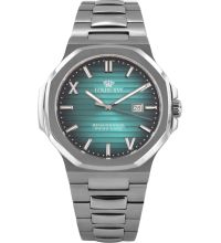 Das Runde Gehäuse ist 40 mm breit sowie 9 mm hoch und schmückt, natürlich abhängig vom individuellen Geschmack, nahezu jedes Handgelenk. Vom Gehäuse hebt sich die Feststehende Lünette dezent ab. Beim Gehäuseboden der Uhr handelt es sich um einen Edelstahlboden, verschraubt, der den Schlusspunkt für ein ansprechendes Design setzt.