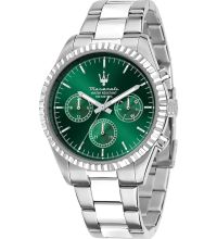 Quarz Uhrwerk (mit Batterie), das, wie für Maserati Uhren üblich, eine präzise Zeitmessung garantiert und folgende Funktionen bereitstellt: Stunde, Minute, Sekunde, Datum, Chronograph, 24-Stunden, Wochentag.