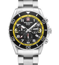 Quarz Uhrwerk (mit Batterie), das, wie für Swiss Alpine Military Uhren üblich, eine präzise Zeitmessung garantiert und folgende Funktionen bereitstellt: Stunde, Minute, Sekunde, Datum, Chronograph.