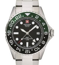 Quarz Uhrwerk (mit Batterie), das, wie für Swiss Alpine Military Uhren üblich, eine präzise Zeitmessung garantiert und folgende Funktionen bereitstellt: Datum, GMT, Minute, Sekunde, Stunde, 2 Zeitzonen.