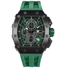 Zusätzliche Freude an Ihrer neuen Tsar Bomba Uhr wird Ihnen das hochwertig verarbeitete Armband aus Silikon – Farbe: Grün – mit Dornschließe bereiten. Das Silikon-Armband bietet einen hohen Tragekomfort und kann bis zu einem maximalen Handgelenkumfang von mm getragen werden.
