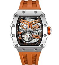 Das Kissene Gehäuse ist 44 mm breit sowie 16 mm hoch und schmückt, natürlich abhängig vom individuellen Geschmack, nahezu jedes Handgelenk. Vom Gehäuse hebt sich die Feststehende Lünette dezent ab. Beim Gehäuseboden der Uhr handelt es sich um einen Glasboden, verschraubt, der den Schlusspunkt für ein ansprechendes Design setzt.