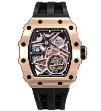 Das Kissene Gehäuse ist 44 mm breit sowie 16 mm hoch und schmückt, natürlich abhängig vom individuellen Geschmack, nahezu jedes Handgelenk. Vom Gehäuse hebt sich die Feststehende Lünette dezent ab. Beim Gehäuseboden der Uhr handelt es sich um einen Glasboden, verschraubt, der den Schlusspunkt für ein ansprechendes Design setzt.
