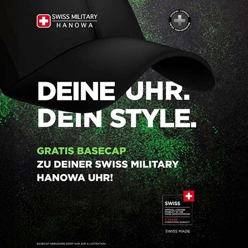 Aktuelle Aktion: Jetzt kostenlose Swiss Military Hanowa Basecap ergattern