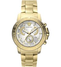 Quarz Uhrwerk (mit Batterie), das, wie für Versace Uhren üblich, eine präzise Zeitmessung garantiert und folgende Funktionen bereitstellt: Chronograph, Datum, Minute, Sekunde, Stunde.