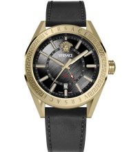 Quarz Uhrwerk (mit Batterie), das, wie für Versace Uhren üblich, eine präzise Zeitmessung garantiert und folgende Funktionen bereitstellt: Stunde, Minute, Sekunde, Datum, GMT.