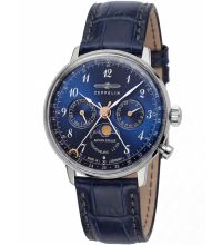 Quarz Uhrwerk (mit Batterie), das, wie für Zeppelin Uhren üblich, eine präzise Zeitmessung garantiert und folgende Funktionen bereitstellt: Datum, Kalenderwoche, Minute, Mondphase, Sekunde, Stunde, Wochentag.