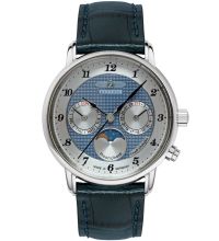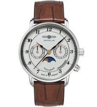 Quarz Uhrwerk (mit Batterie), das, wie für Zeppelin Uhren üblich, eine präzise Zeitmessung garantiert und folgende Funktionen bereitstellt: Stunde, Minute, Sekunde, Datum, Wochentag, Mondphase.