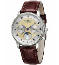 Das Herzstück dieses Zeitmessers ist ein Swiss Made Quarz Uhrwerk (mit Batterie), das, wie für Zeppelin Uhren üblich, eine präzise Zeitmessung garantiert und folgende Funktionen bereitstellt: Datum, Minute, Mondphase, Sekunde, Stunde, Wochentag.